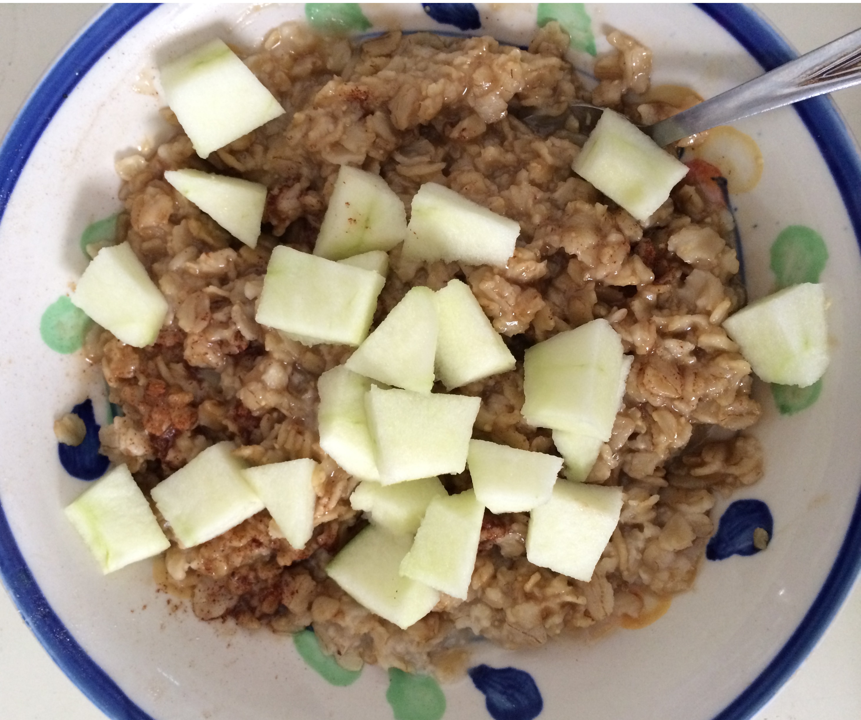 Now, mom, if I had your jars of nuts, toppings, and other craziness, I think I might have added nuts of some kind, maybe some Chia seeds, and some almond butter. Alas! My cupboard is severely lacking in terms of funky toppers.