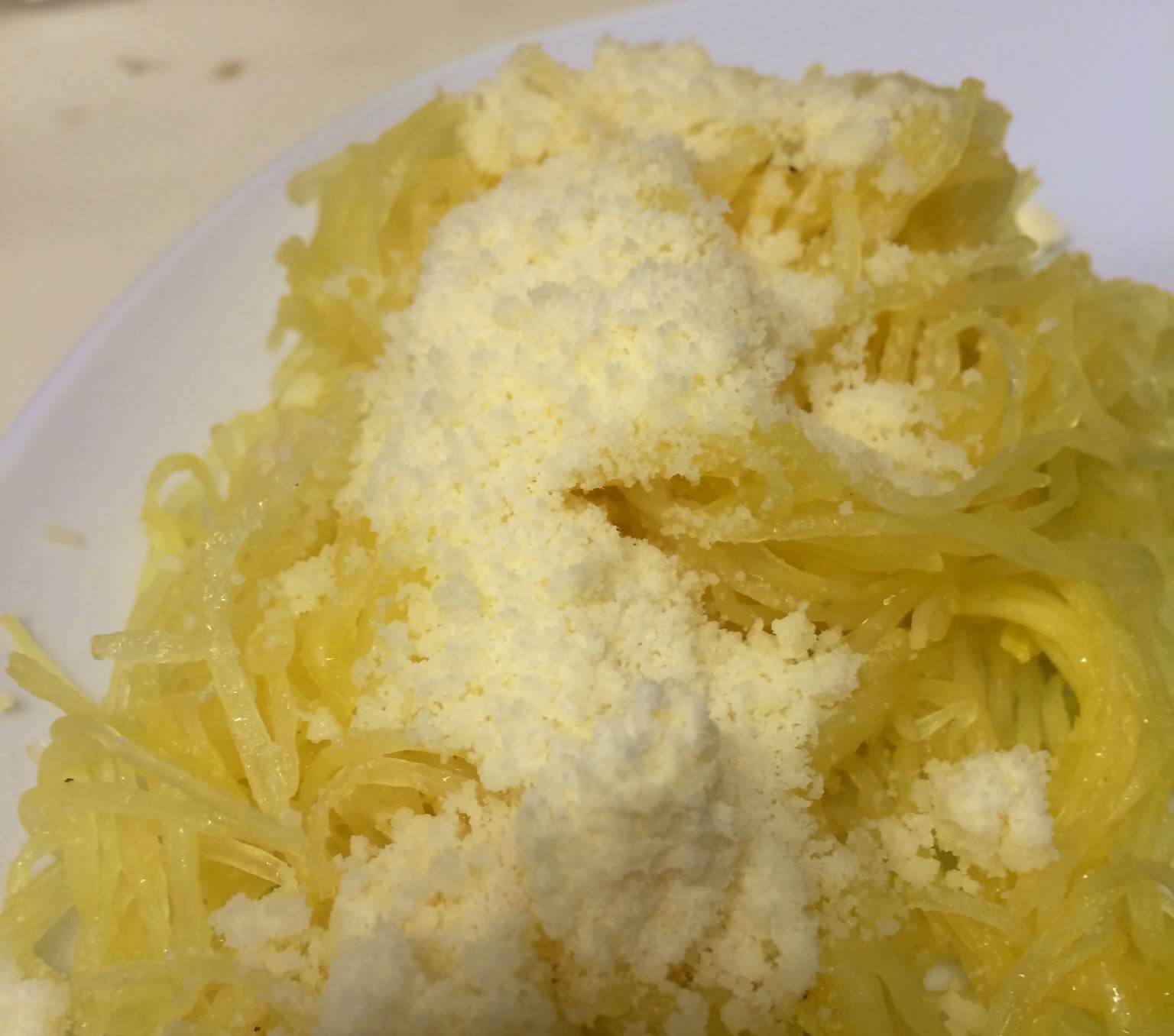 until your patience runs outfor 15 minutes. - Take a fork, scrape the flesh of the squash and get ready to have your mind blown. Literally, it just magically falls into spaghetti from the fork. I can’t even properly prepare you for how magical this experience is.