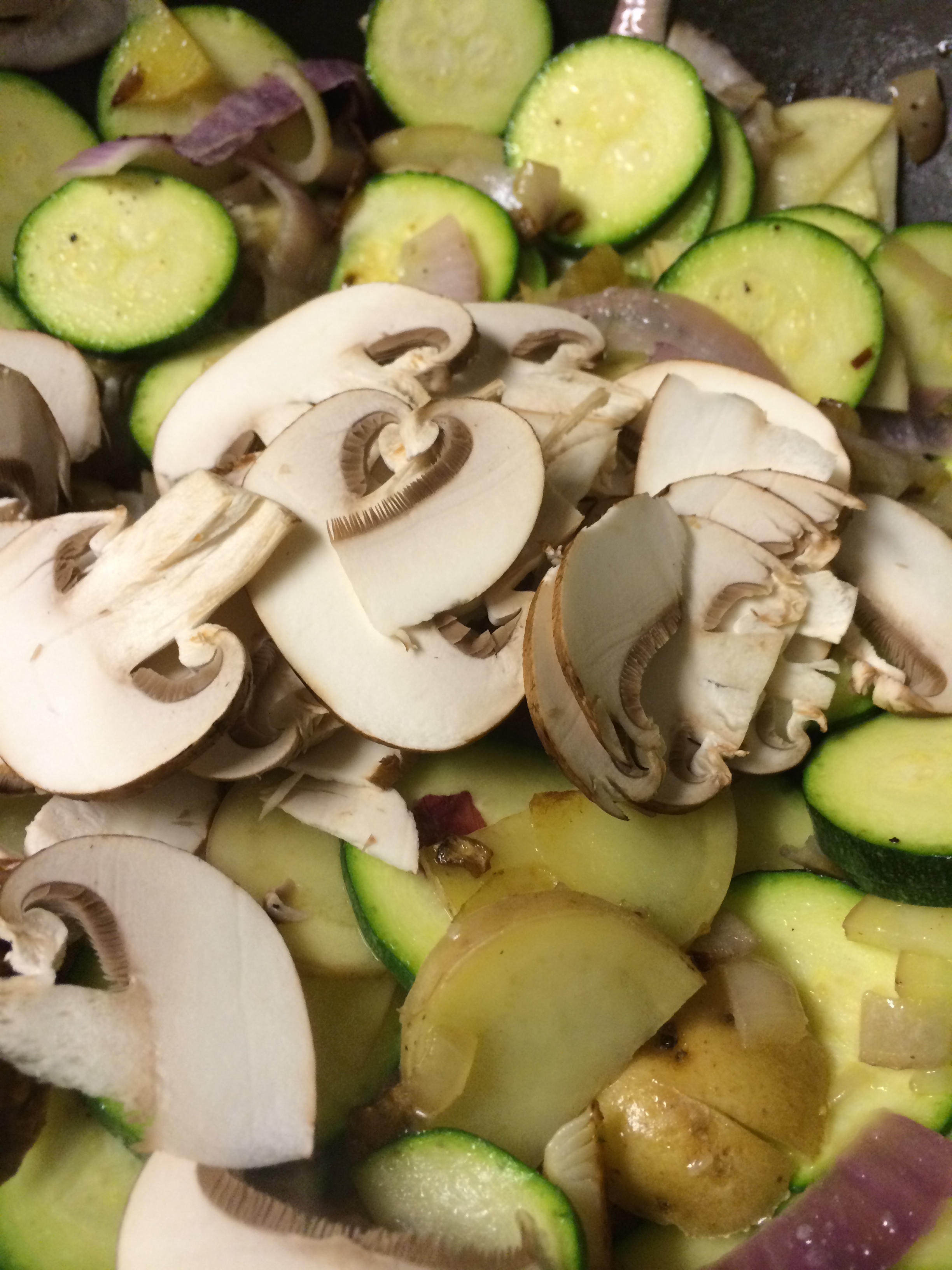 Yesterday, I went crazy. I wanted to eat a zillion things all at once because it was the first beautiful day (today being the second) and I wanted zucchini and mushrooms and shallots and onions and it just got out of control.