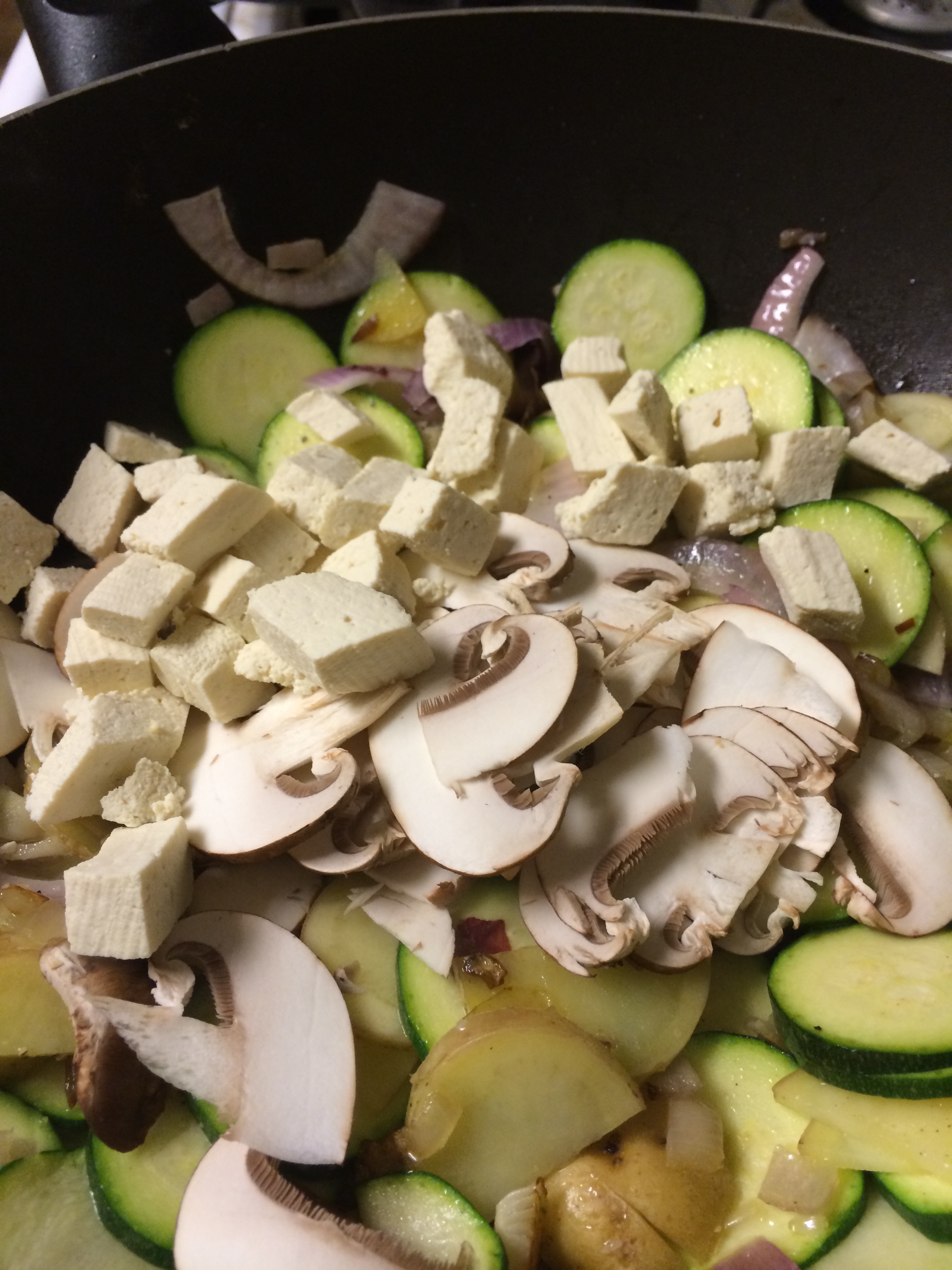 I don’t think it’s necessary to do a step-by-step. Just add things in order of how cooked you need each thing to be (I.e., garlic onions first, spinach last, etc.) You don’t want super over done tofu or barely cooked potatoes!