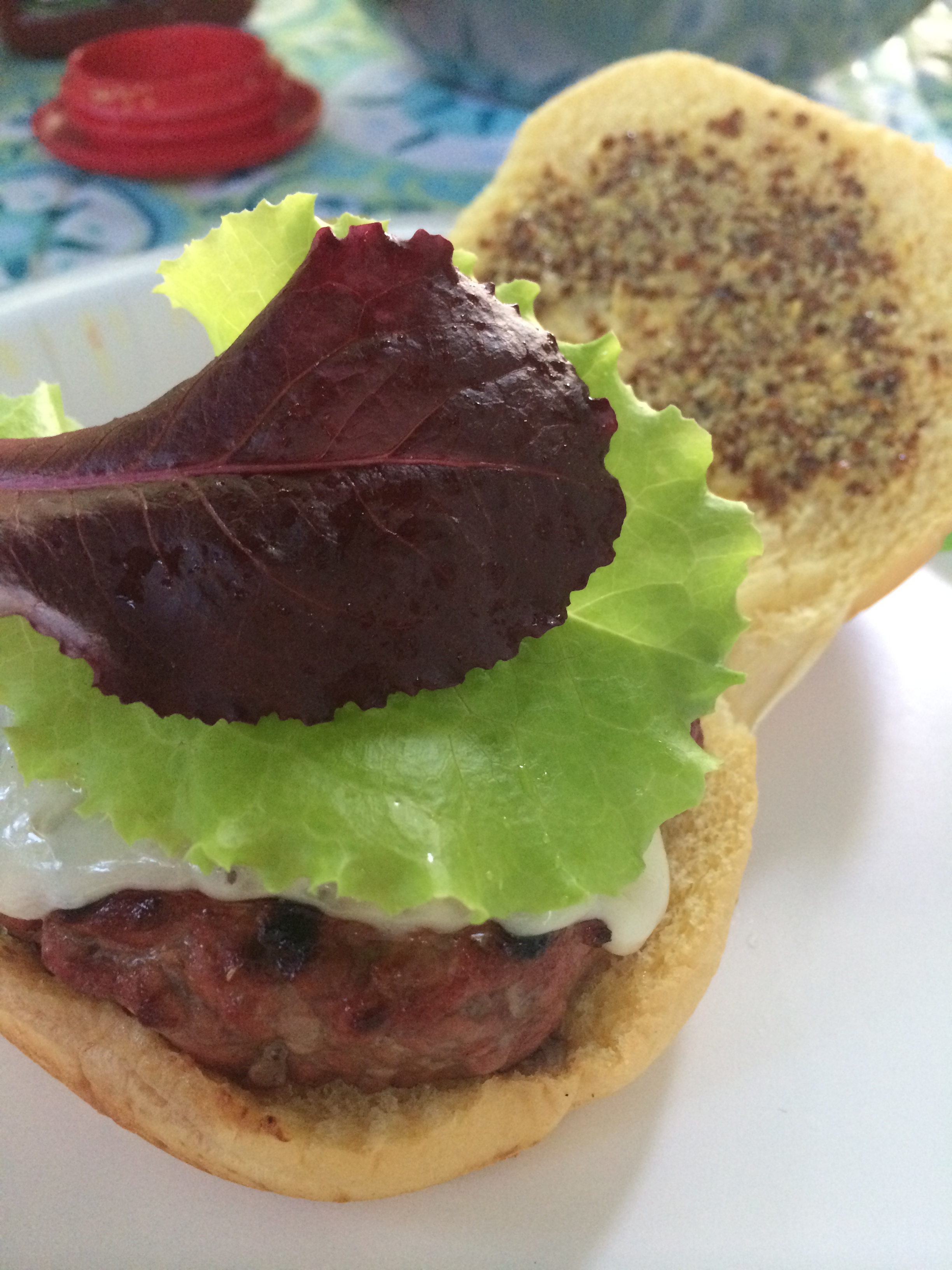 Burgers. The ultimate summer meal. And topped off with some whole grain mustard, some provolone cheese, and freshly picked lettuce it was super summery and super delicious. Literally, I picked the lettuce ten minutes before this picture was taken, and from your garden mom!