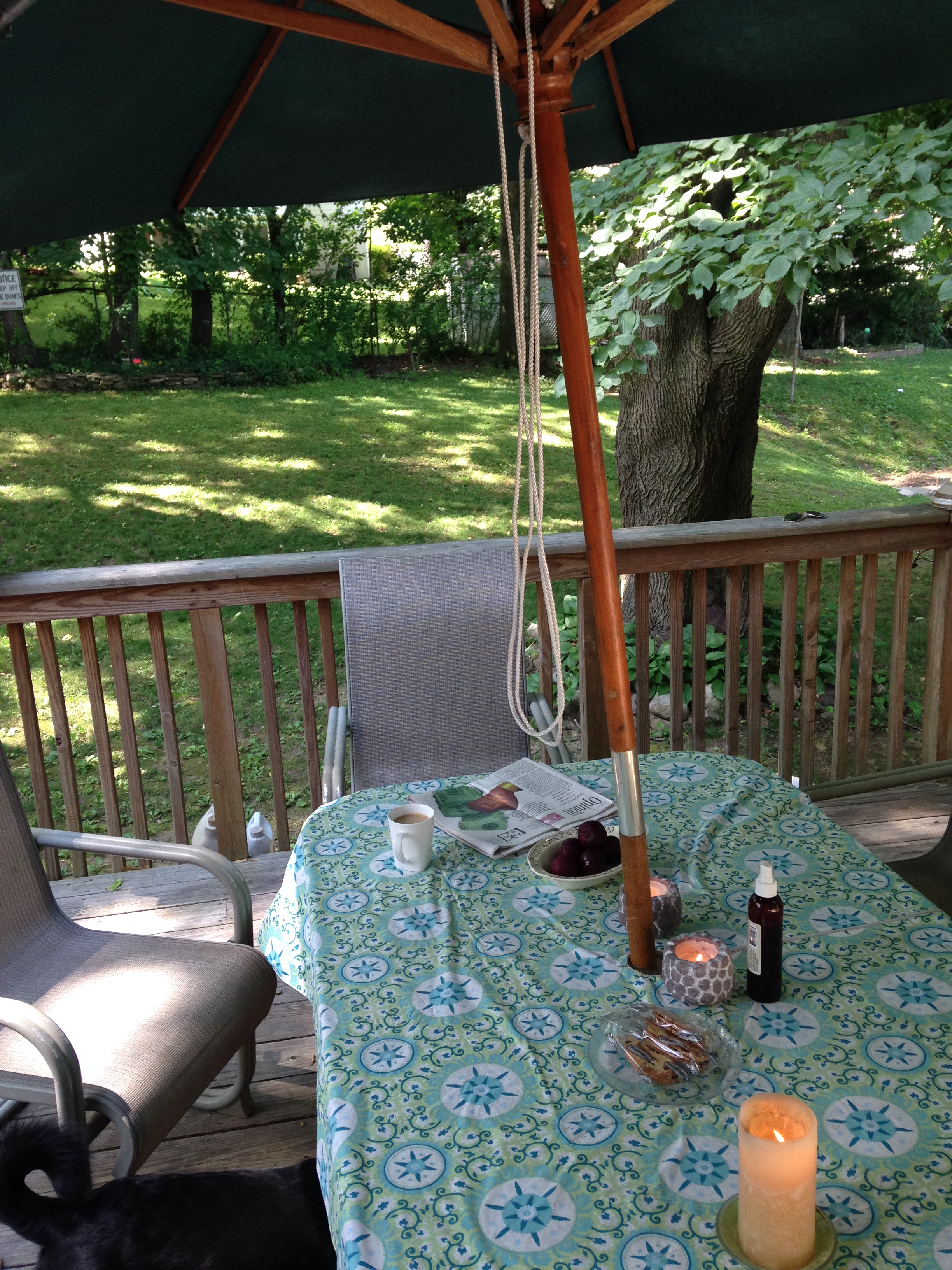 Ahhh! There is nothing like a quiet Sunday morning of reflection and contemplation in a beautiful setting – my backyard! The boys are away and it is peaceful! I am enjoying the day with Lucy and the company of good neighbors! I will soon retreat to my studies, which I love! And who can complain about the 21st century classroom – my deck! Enjoy this glorious day!