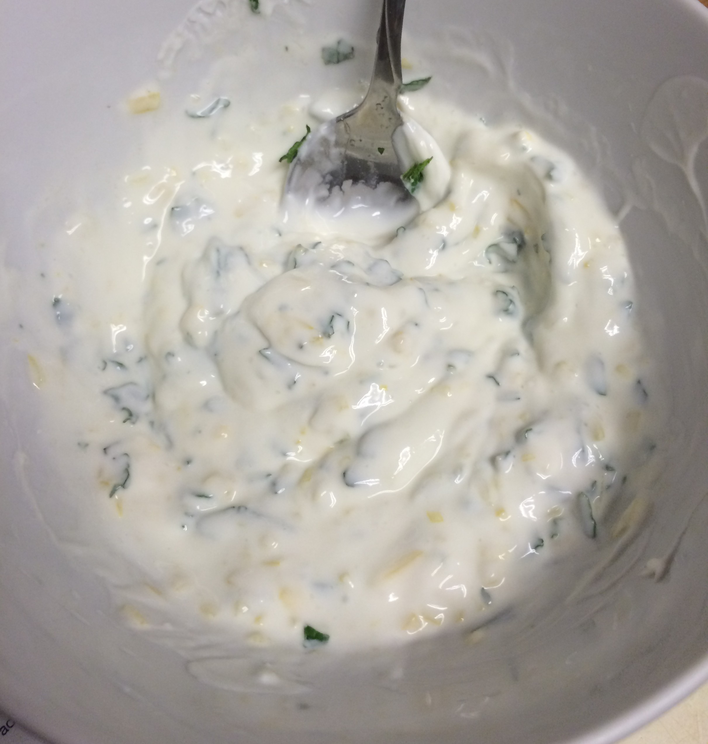 This is a logical segue into the Tzatziki sauce. First, let’s definitely clarify: Tzatziki is a sauce because it is not made with meat product. I think it’s important to let our readers know, Ma, that our blog’s name, Gravy or Sauce, comes from an integral family debate: when is it sauce and when is it gravy? Well, by gram’s definition – the same gram who told me to mix meatballs with my hands – if it’s made with just veggies, it’s a sauce, but if it’s made with meat drippings of some sort, it’s a gravy!