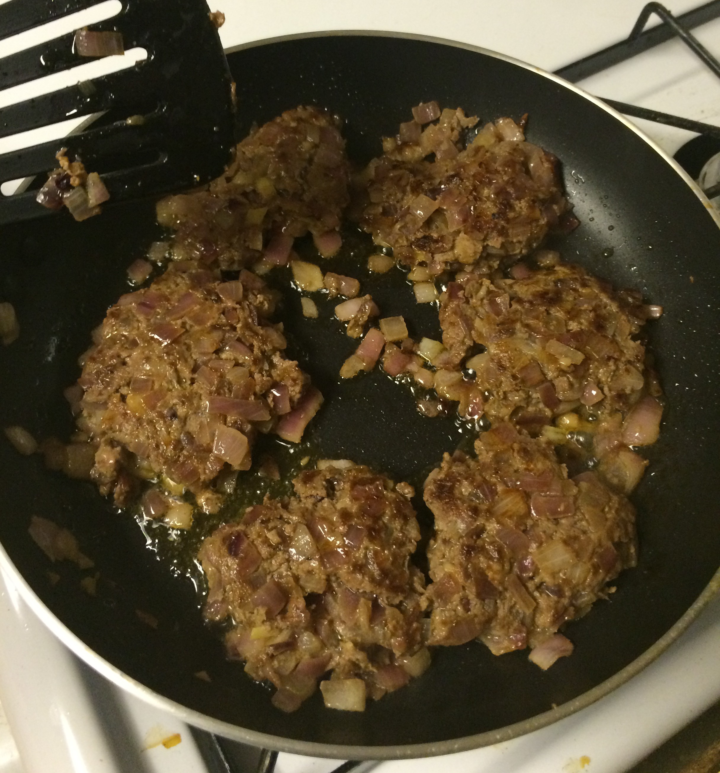 Now, back to Shawarma! Separate lamb/beef into patties and cook them till browned on both sides.